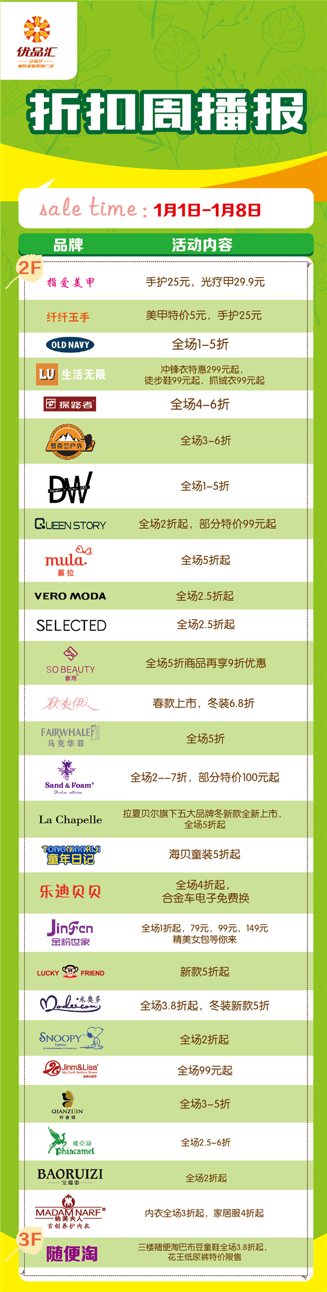 1月1日—1月8日大牌折扣信息