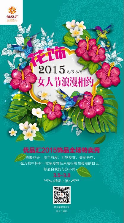 春暖花開,流年有愛。萬物復蘇,美麗共存。在萬物中擁有一枚摯愛飾品來裝扮更加美麗的自己,彰顯自我的與眾不同。3.5-3.8 優品匯2015花飾全場特賣秀,只為每一個愛美的你!