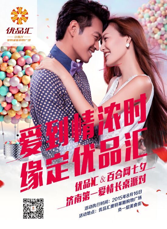優品匯奧特萊斯聯手百合網“愛到情濃時 緣定優品匯”七夕濟南第一愛情長桌派對,就在8月16日下午14:00,我們一起與你見證幸福瞬間!